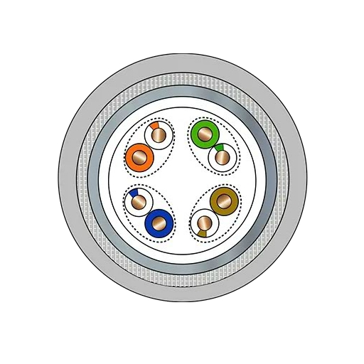 CAT5E SF-UTP Kablo 100 ohm empedansta ve 4 renk kodlu perler ikili grup şeklinde her biri ayrı ayrı folyolanmış ve bu kablolar, kalay kaplı bakır saç örgü ile kaplanmış ve kılıflanmıştır. (folyo yüzü Dış kısma bakacak şekilde yerleştirilmiştir). CAT 5E kablo 100 Ohm empedansta, yatay yapısal kablolama sistemleri için kulanılmakta olan 4 per ve 8 tel bulunmaktadır. Tüm Kategori 5E kablolar, Network sistemlerinde yaygın olarak kullanılmaktadır. ISDN,10 Base-T Ethernet, 100 Base-T Ethernet, 1000 Base-T Ethernet, TP-PMD/ TP-DDI, ATM sistemlerini destekler. Uygulanacak kablo uzunluğu ISO/IEC11801 ve EN 50173’e göre 90 metreyi geçmemelidir.